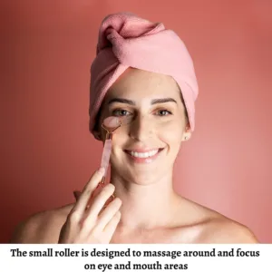 Rose Crystal Skincare Kit: (1) Quartz Roller, (1) Quartz Gua Sha, (1) Ridged Roller, (1) Carry Pouch, and Instructions